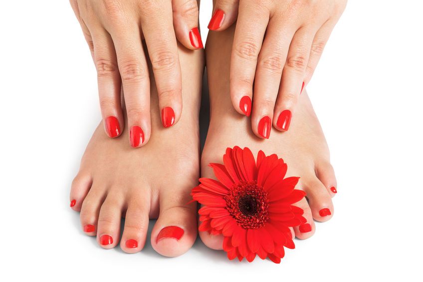 Entretien des ongles et des cuticules, bain de pieds, gommage, modelage, pose d'un vernis transparent